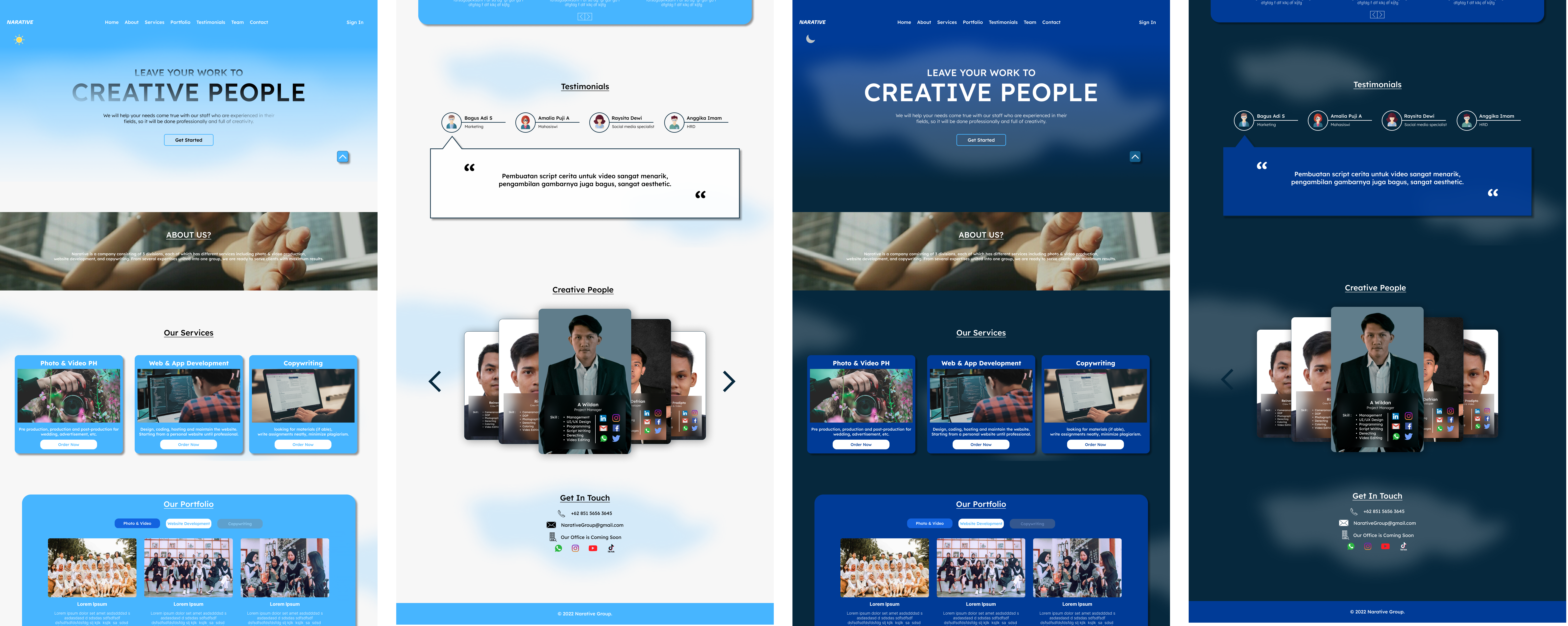 As a UI/UX designer, I have experience in creating visually appealing and user-friendly designs that enhance user interactions. One of my first major projects involved designing a Company Profile with two distinct themes—light and dark—to cater to different user preferences. This project allowed me to apply my skills in creating intuitive layouts, selecting appropriate color schemes, and ensuring seamless user navigation across multiple interfaces. My goal is always to deliver designs that not only look great but also provide an exceptional and accessible user experience.